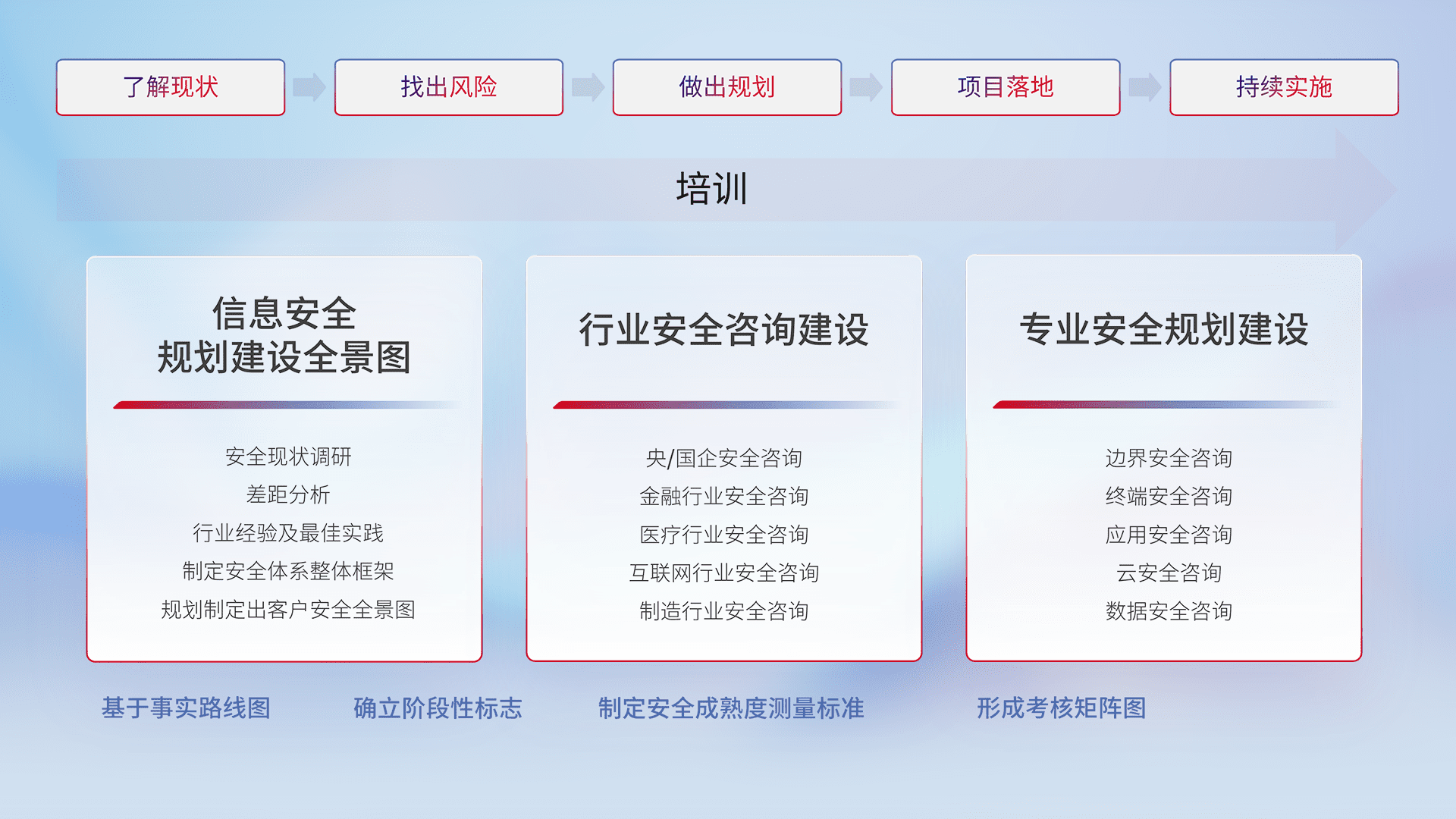 梳理客户信息安全现状调研、、差距分析结果,,,结合行业先进经验及最佳实践,,,制订客户的信息安全管控体系总结架构,,,,最终形成一个完整的客户信息安全规划与建设的全景图。。
