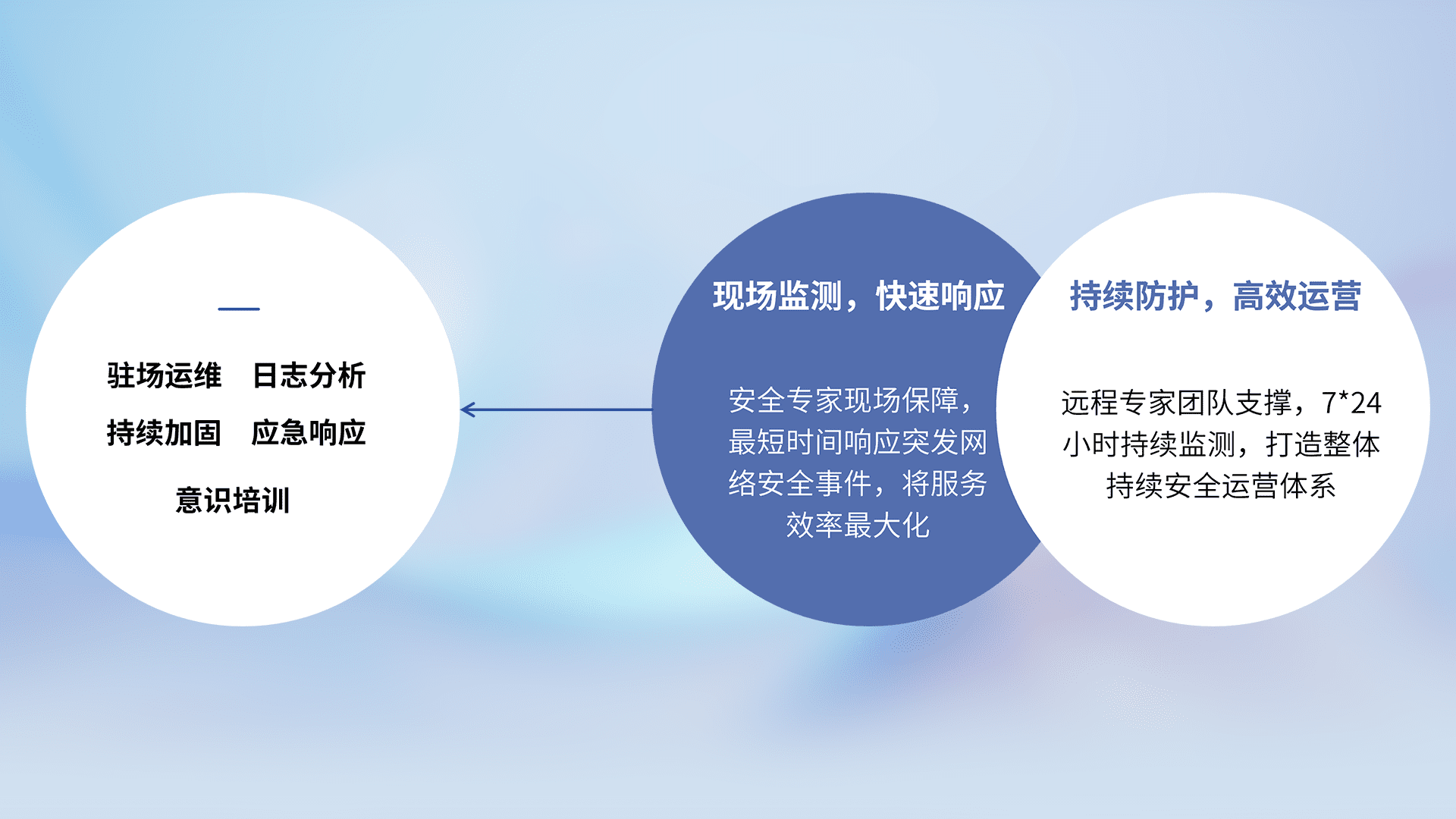 针对客户行业特性,,,,提供专属的一站式安全管理服务,,,帮助客户全面感知网络空间威胁,,,通过安全专家的线上、、、、线下防护支持,,,,实现风险闭环,,将安全保障常态化,,,为客户打造常态化安全运维运营服务。。。。